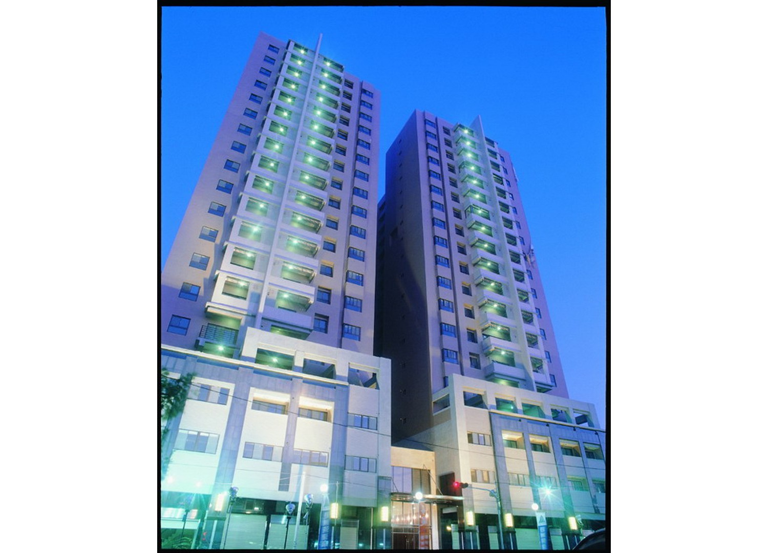 1. The tallest building among all the re-constructions after the 921 Earthquake. On the east, it is closely adjacent to a 6F residential building. The basement was excavated applying new and old retaining structures alternately. The retaining columns, anchors, and steel member horizontal supports work with one another flexibly. Careful planning was required prior to construction. The construction was under joint supervision by the 921 Earthquake Post-Disaster Recover Commission, the Urban Renewal Commission, and Chinese Architecture Management Company with rigid quality control. The whole building has light steel framework partitions internally that are 10 cm thick with fiber cement boards 8 mm thick on both sides. The center is filled with light cement in order to avoid the same serious cracks on tile walls as those during the 921 Earthquake. It also greatly helps with enhanced seismic performance. For recovered building structures, it is a significant benchmark.